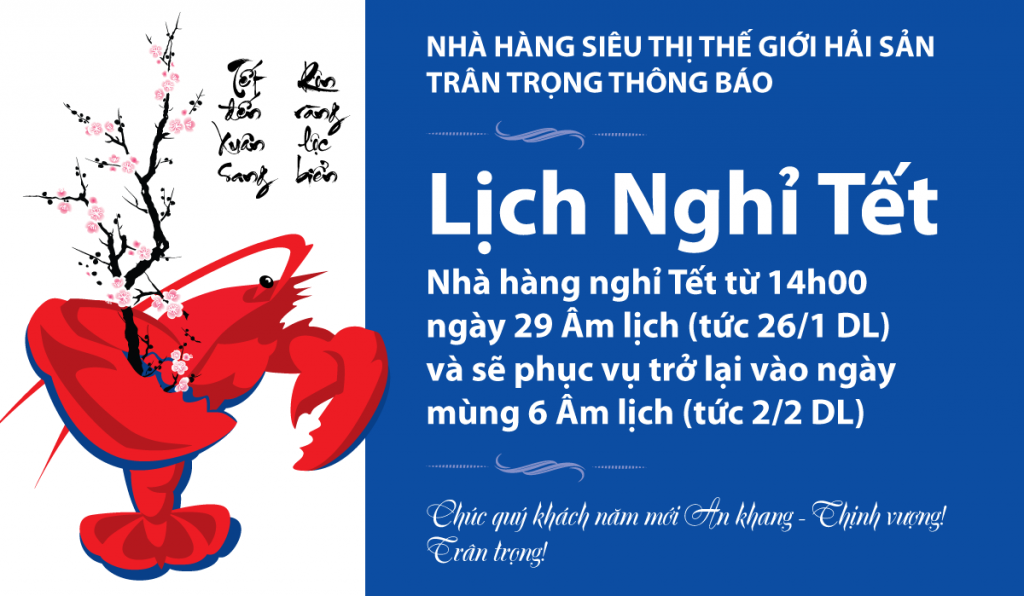 Hệ thống nhà hàng siêu thị Thế Giới Hải Sản trân trọng thông báo lịch