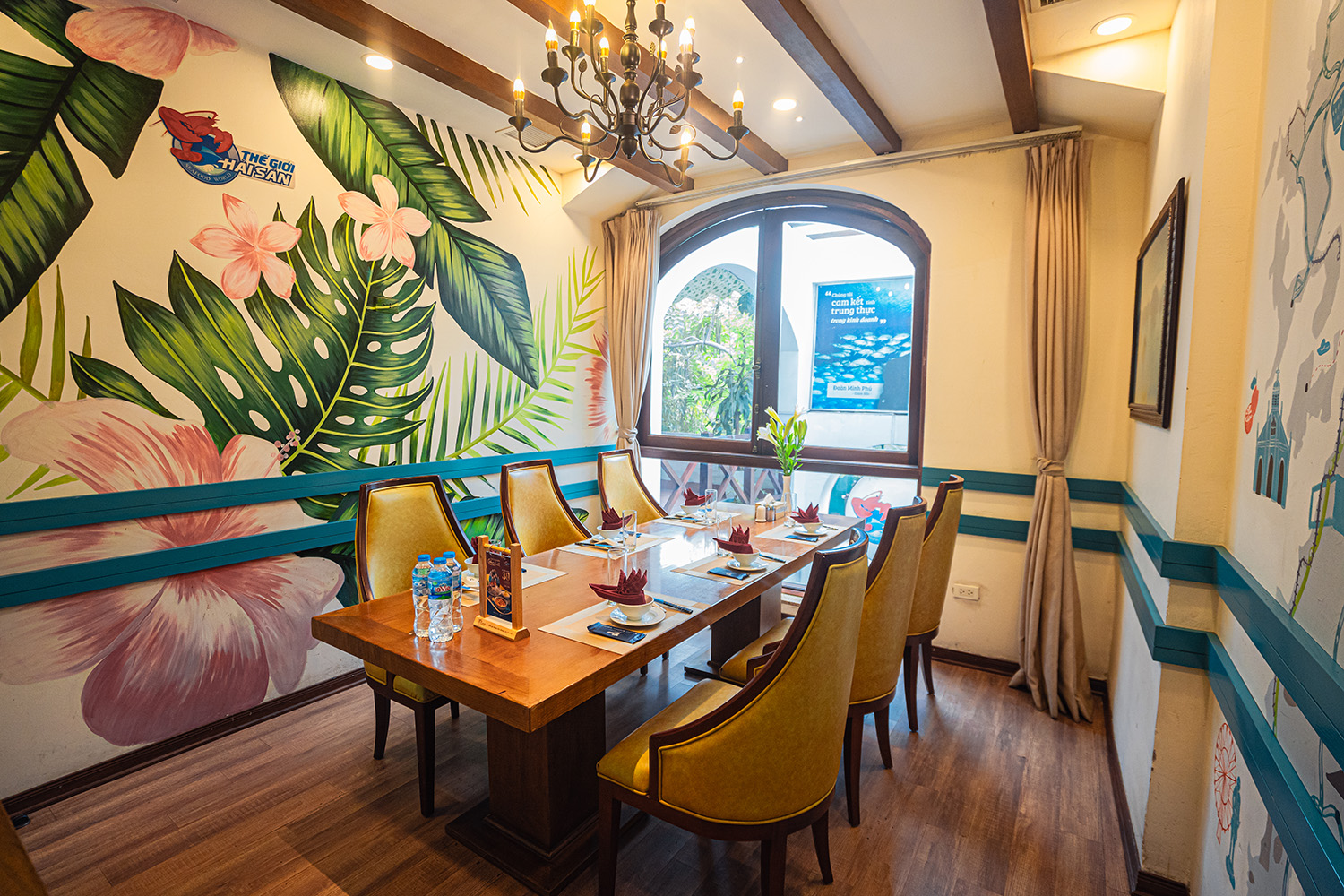 Tựa như con thuyền quý tộc thong dong giữa biển khơi, Thế Giới Hải Sản 75A Trần Hưng Đạo mang vẻ đẹp sang trọng, cao cấp và gợi lên cảm giác du hành. Một không gian dành cho những bữa tiệc trang trọng, nơi tinh hoa biển được thưởng thức trong nhịp chậm và đầy khí chất.