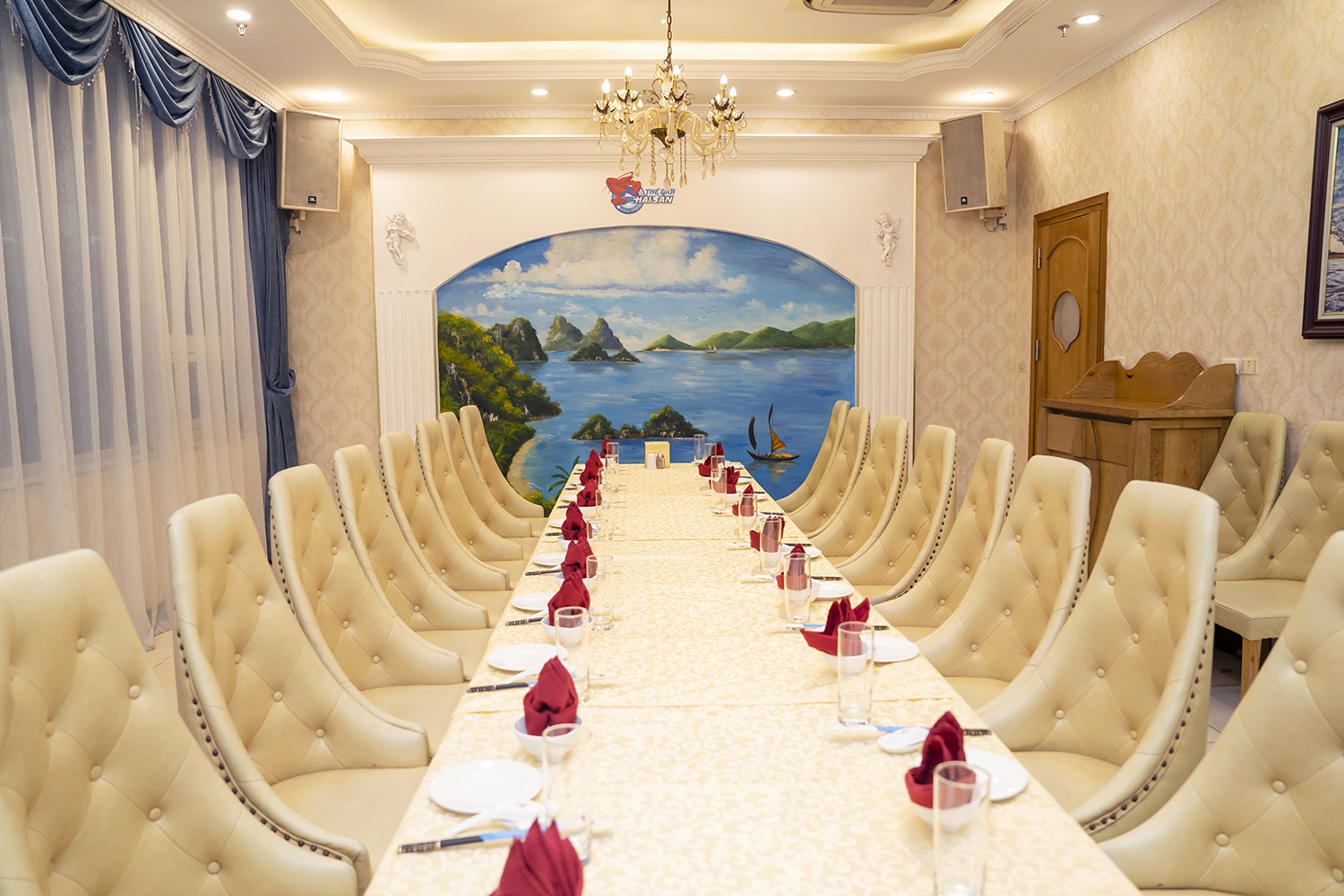 Biểu tượng của sự sang trọng và đẳng cấp trong thế giới hải sản cao cấp, 99 Mễ Trì sở hữu không gian linh hoạt với khu VIP riêng tư và phòng tiệc quy mô lớn. Nơi đây đáp ứng trọn vẹn trải nghiệm cao cấp với những buổi gặp gỡ quan trọng và các bữa tiệc đông đúc cần sân khấu, màn led, ánh sáng…
